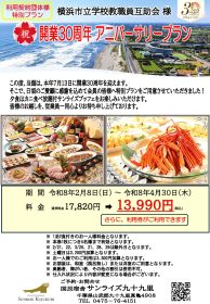 「国民宿舎サンライズ九十九里」開業30周年アニバーサリープランのご案内が届きました。 投稿日:2026年2月10日新着情報, お知らせ 「国民宿舎サンライズ九十九里」開業30周年アニバーサリープランのご案内 ◎令和7年度のリフレッシュ補助券は3月31日宿泊分までのご利用となります。